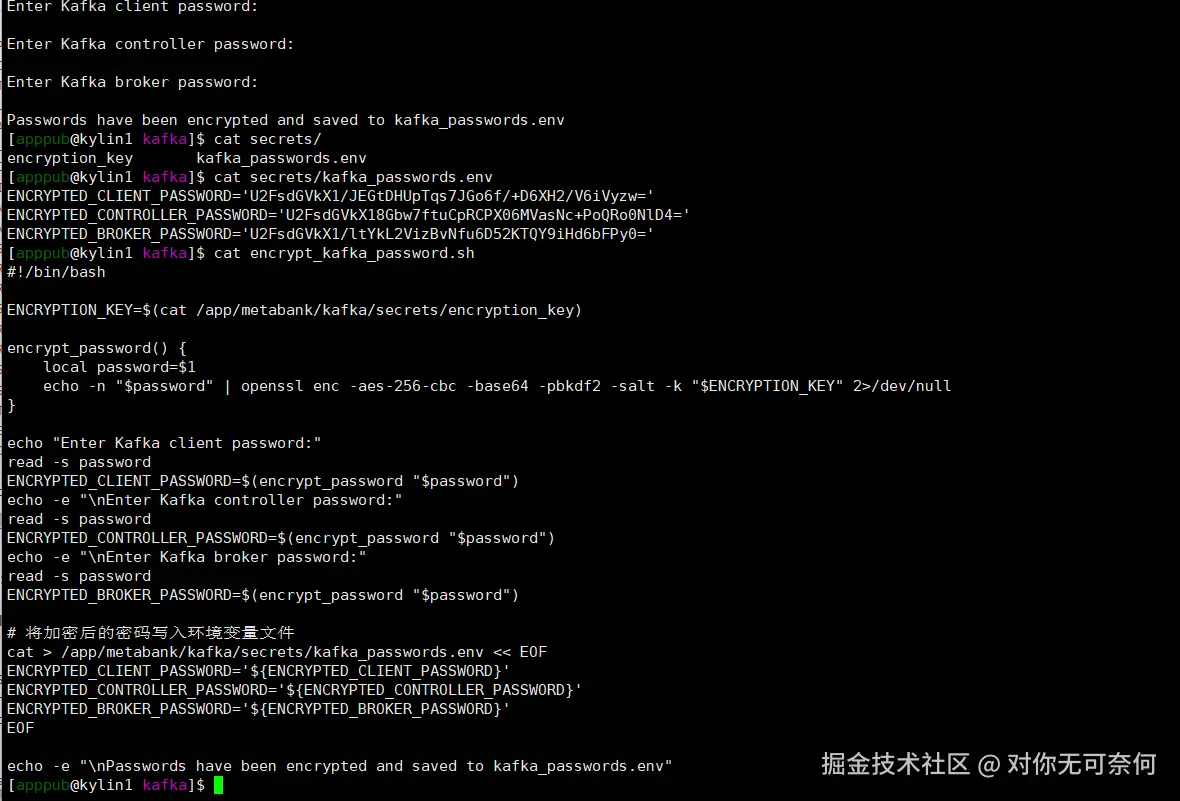 创建一个脚本 encrypt_kafka_password.sh 来加密 Kafka 的密码:
