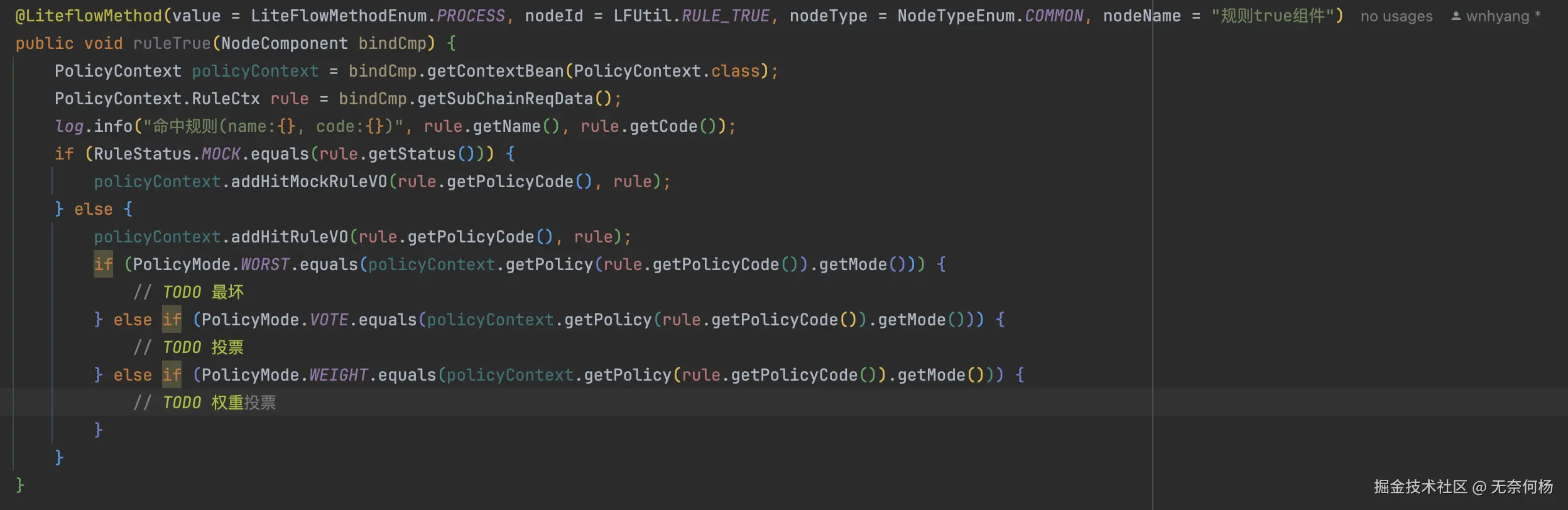 @LiteflowMethod(value = LiteFlowMethodEnum.PROCESS, nodeId = LFUtil.POLICY_COMMON_NODE, nodeType = NodeTypeEnum.COMMON, nodeName = "策略普通组件")