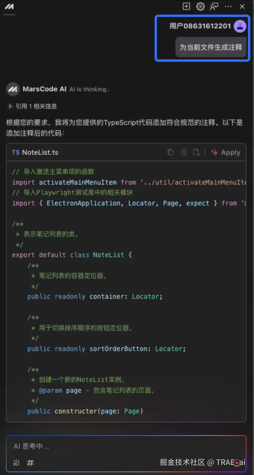 在需求开发场景中,当我们需要在现有代码的基础上增加或修改某些功能,需要人工找寻多个文件中涉及到修改的地方。现在有了 Apply 能力,你只需要告诉豆包MarsCode 你的需求,AI 能够提供相关代码方案并自动识别文件路径,在对应位置完成代码插入/修改。