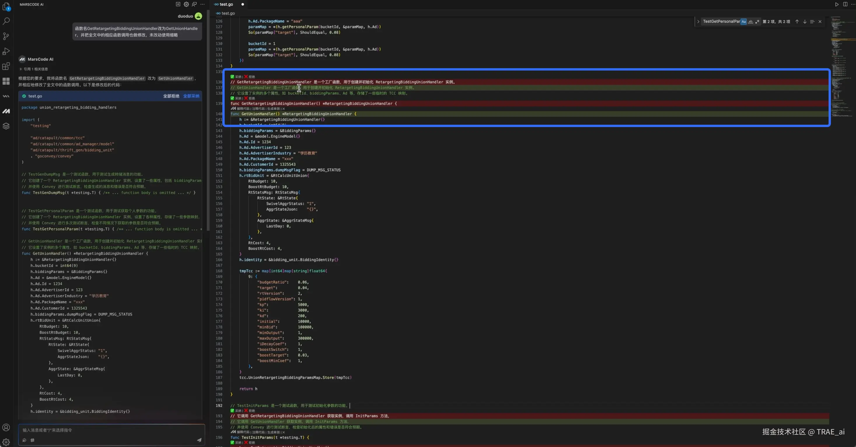 修改函数名称时往往牵一发而动全身,需要在文件中仔细地定位每一处该函数的引用,手动逐一修改,稍有疏忽就可能引发连锁错误,导致程序崩溃或出现难以排查的漏洞。如今,漫长的查找与替换过程可以让豆包MarsCode 来完成了!你可以通过自然语言要求模型修改函数名称,Review 结果后点击代码块上的 Apply 按钮即可在在文件中进行应用,还可以通过多轮对话补充需求,函数名修改更轻松了~
