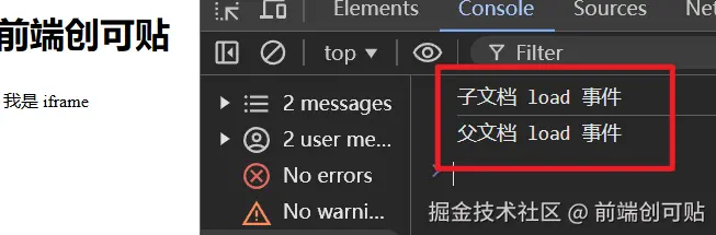 嵌套的 iframe 元素加载了一个子文档,子文档中的资源、脚本等的加载会延迟子文档自己的 load 事件,也会延迟主文档的 load 事件。子文档的 load 事件先触发,然后触发父文档的 load 事件。