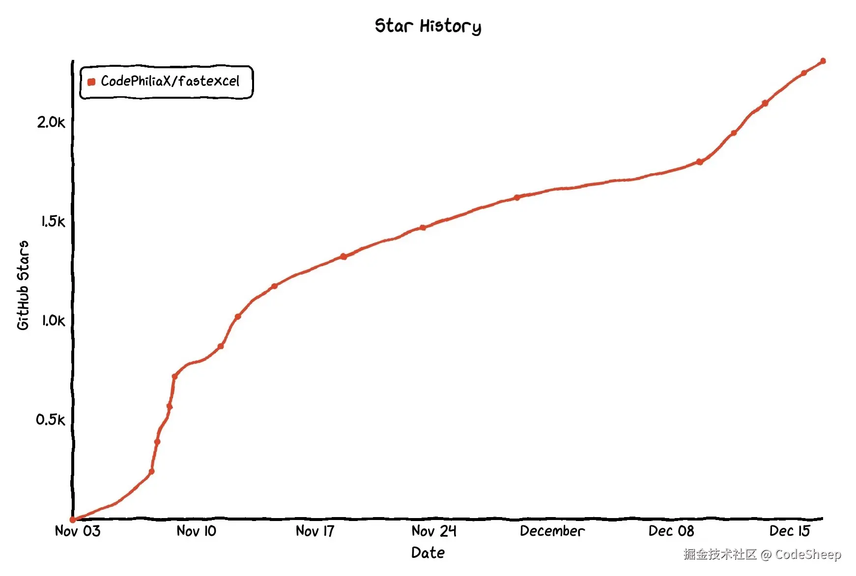 新项目 FastExcel 刚开源不久,目前在 GitHub 上的 star 标星就已经突破了 2000!这也可见其受欢迎程度。