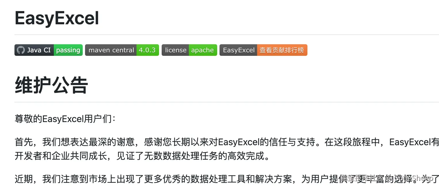 众所周知,上个月的时候,GitHub 知名开源项目 EasyExcel 曾对外发布公告将停止主动更新,当时这个消息在网上还引发了不少讨论。