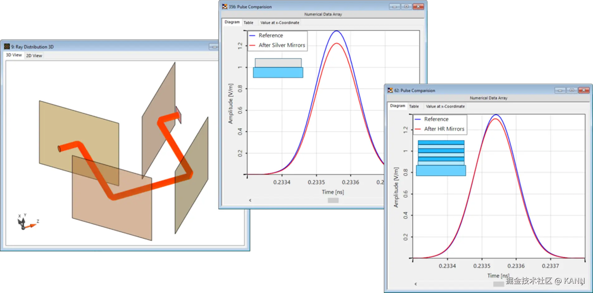 | 在现代光学系统中,超快现象经常被应用于各种各样的场合。由于这种短脉冲的光谱带宽很大,色散效应在这些系统的设计和分析中起着重要作用。因此,为了确保准确和合适的建模,系统中的所有色散效应都必须得到充分考虑。为了强调快速物理光学软件VirtualLab Fusion在这个特定光学领域的能力,我们展示了两个例子。在第一个例子中,我们研究了一个脉冲在不同材料中传播时的行为,并说明了相应的色散相关效应。我们还用这个例子来展示VirtualLab Fusion的脉冲评估检测器的能力。在第二个例子中,我们研究了在电介质或金属涂层镜面上的反射所产生的色散效应。 镜面涂层对脉冲特性的影响 |