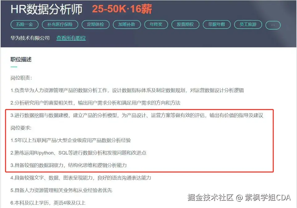 华为招聘HR数据分析师: