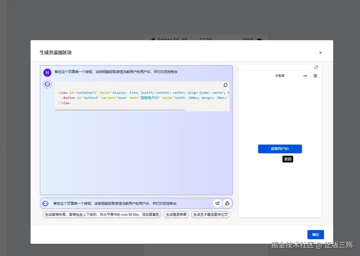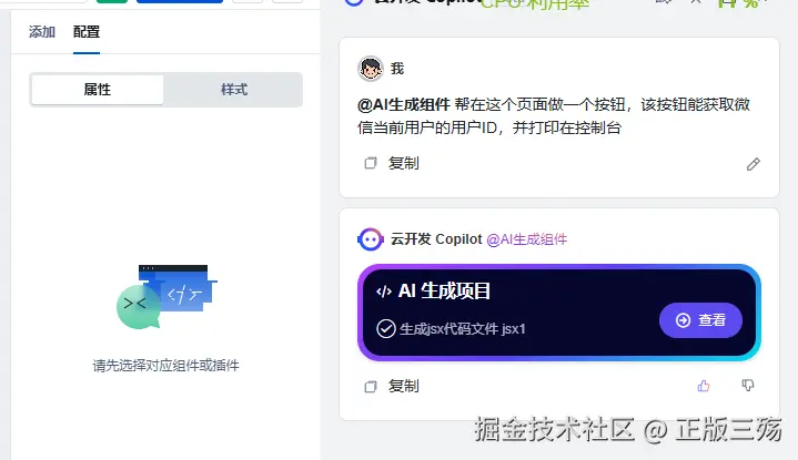 需要在左边添加中使用AI,并不能使用原来的Copilot聊天窗口,且不支持上下文,但基于我的需求比较简单,一句话就能生成完美的页面。