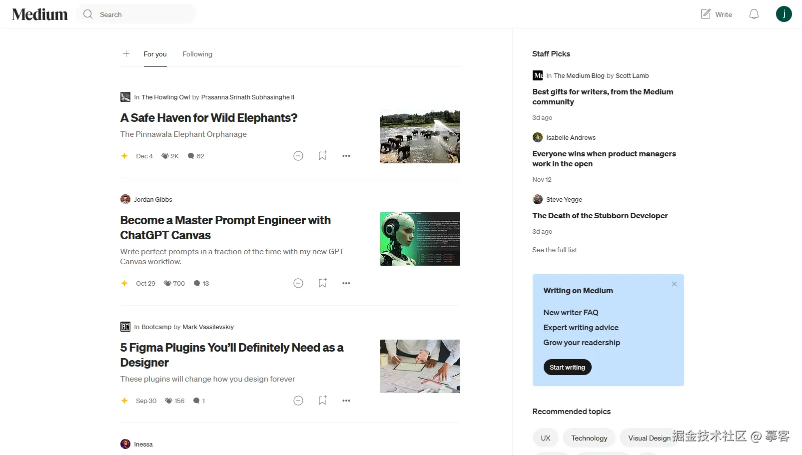 Medium是全球知名的创作平台,汇聚了来自各行各业的内容创作者,包括设计师、开发者、产品经理等。在这里,设计师可以读到各种关于UI/UX设计、产品设计思维、设计实战复盘等干货。