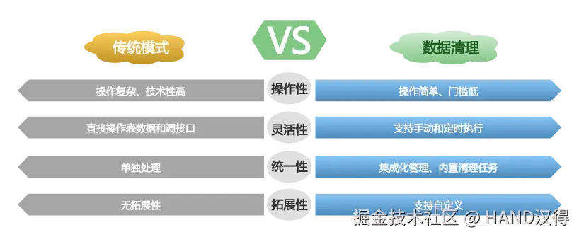 汉得H-ZERO企业级PaaS平台,凭借丰富的企业资源管理实践经验,深刻洞察用户在使用过程中的痛点。我们为您量身定制了一套高效、用户友好的数据清理解决方案。该方案专门设计来简化企业在处理日志表和数据表归档清理时的复杂性,旨在提升开发效率并实现管理的便捷化。