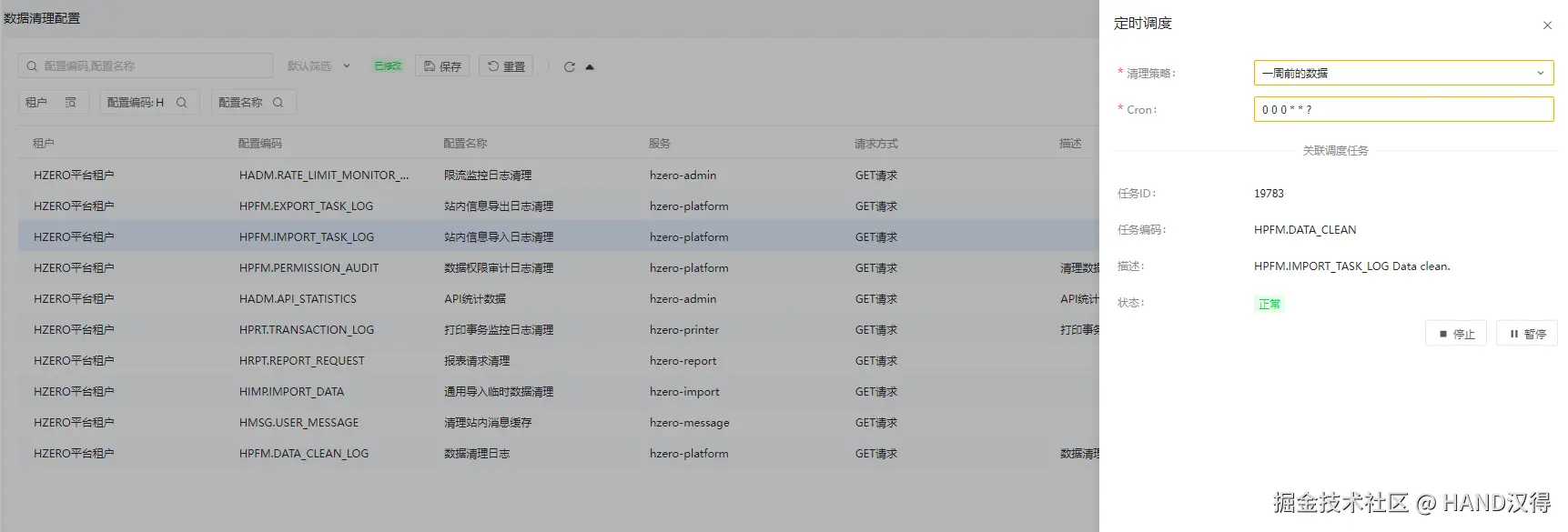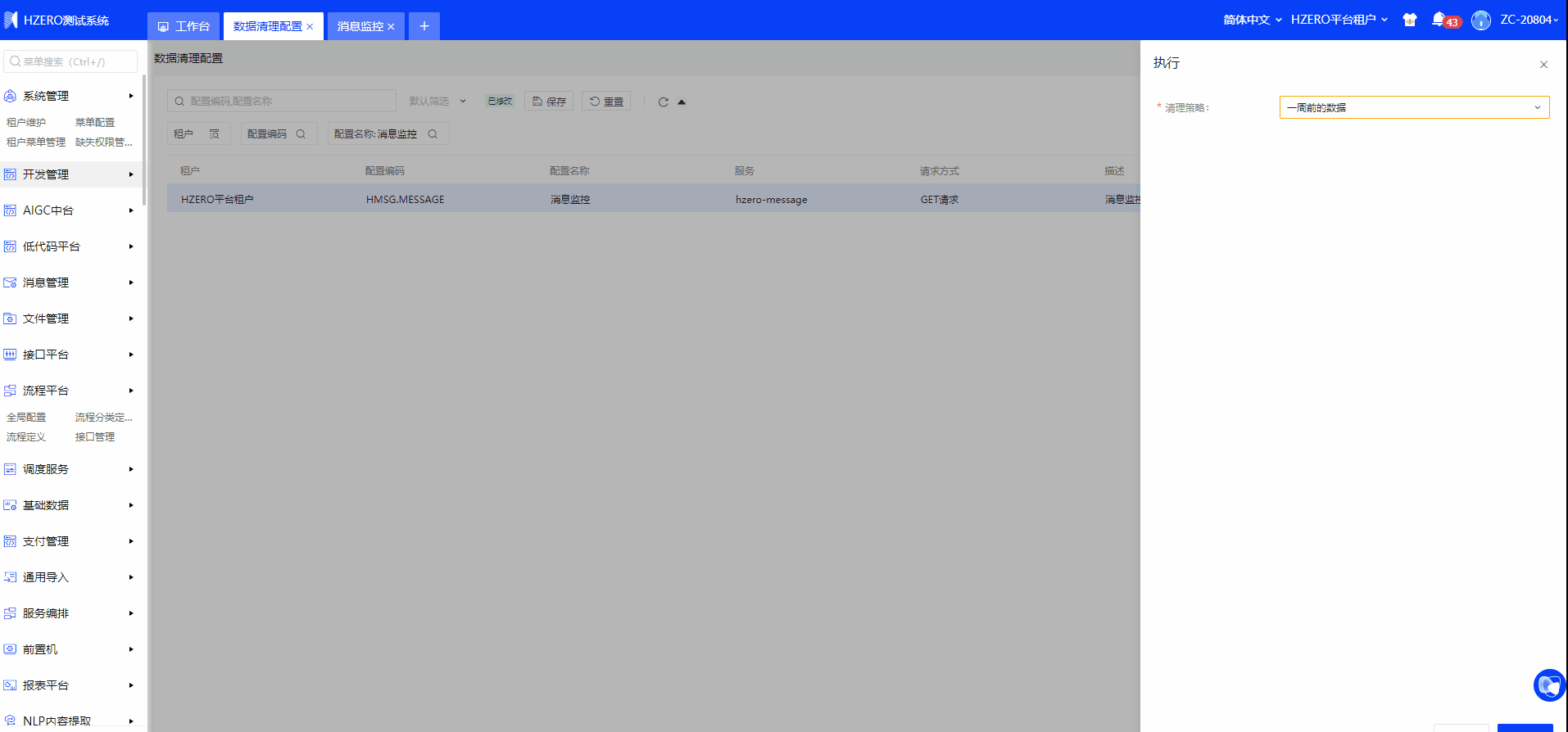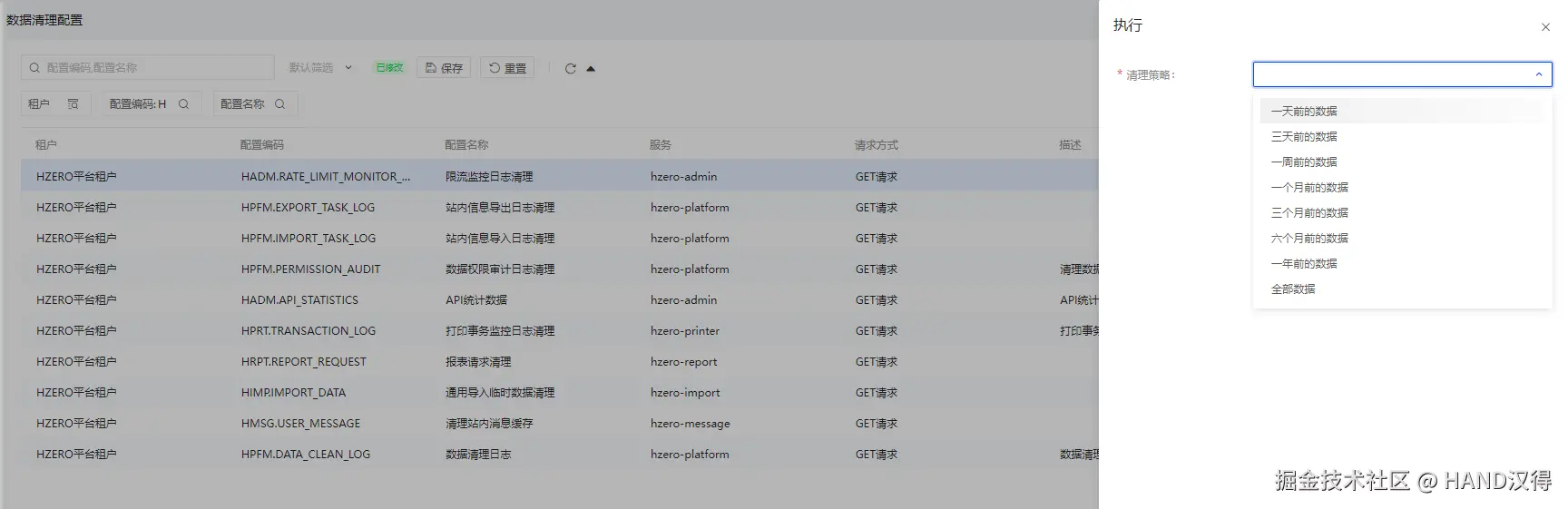 为了简化数据清理的过程,HZERO系统通过在前端提供一个用户友好的配置界面,使得业务人员能够轻松地进行数据清理操作。用户只需了解相关接口信息,即可通过简单的配置步骤,高效地完成数据清理任务,大大降低了操作的复杂性和门槛。