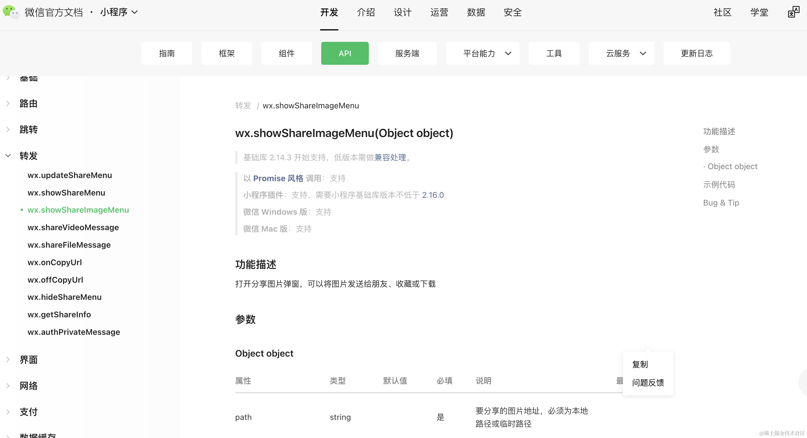 官方文档:wx.showShareImageMenu(Object object) | 微信开放文档