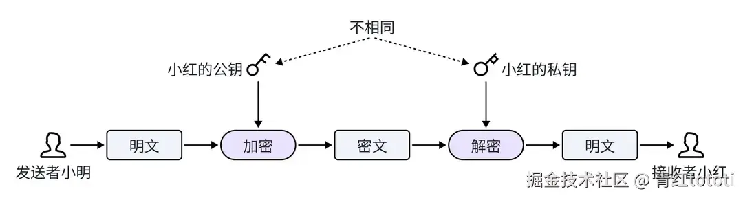 为了解决对称加密的问题,诞生了非对称加密:使用一对不同的密钥,公钥和私钥。公钥和私钥需要配对使用