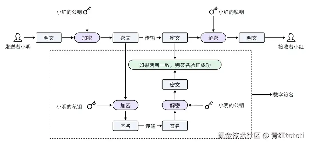 数字签名技术使用私钥进行加密,使用公钥进行解密和验证,它能够验证消息是否是指定的发送者发出