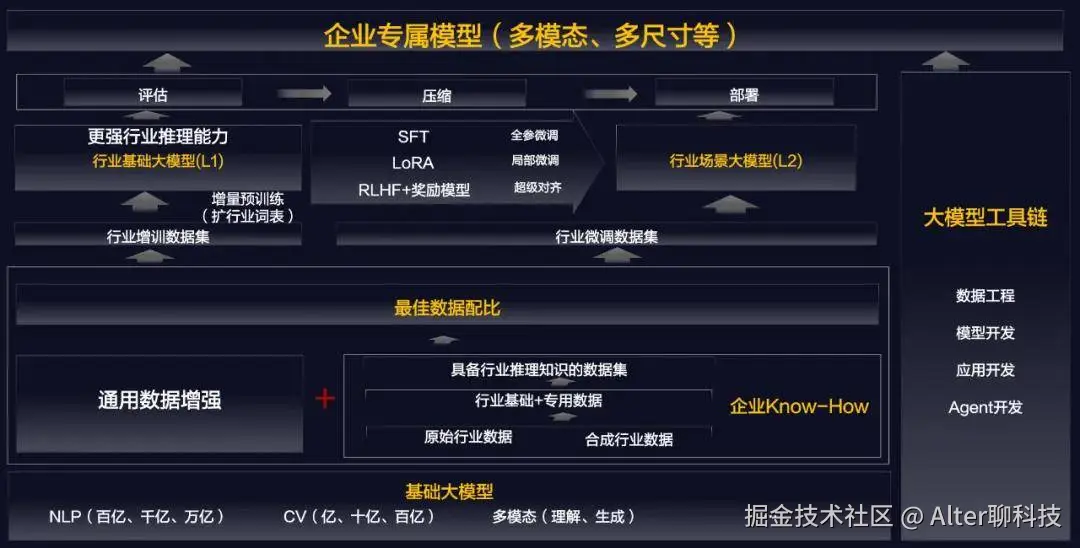 第二,用基础大模型+工具链+企业经验,构建企业自己的专属模型。