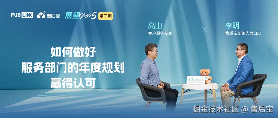 售后宝「展望2025:服务创新业务价值」系列直播,邀请行业专家和管理者,分享优秀实践,面对企业在服务领域具有普遍性的疑问探寻答案,发掘服务可以实践的创新点以及能够带来的新价值。第二期直播特邀客户服务专家高山**,与售后宝创始人兼CEO李明共同探讨如何做好服务部门的年度规划,赢得认可。