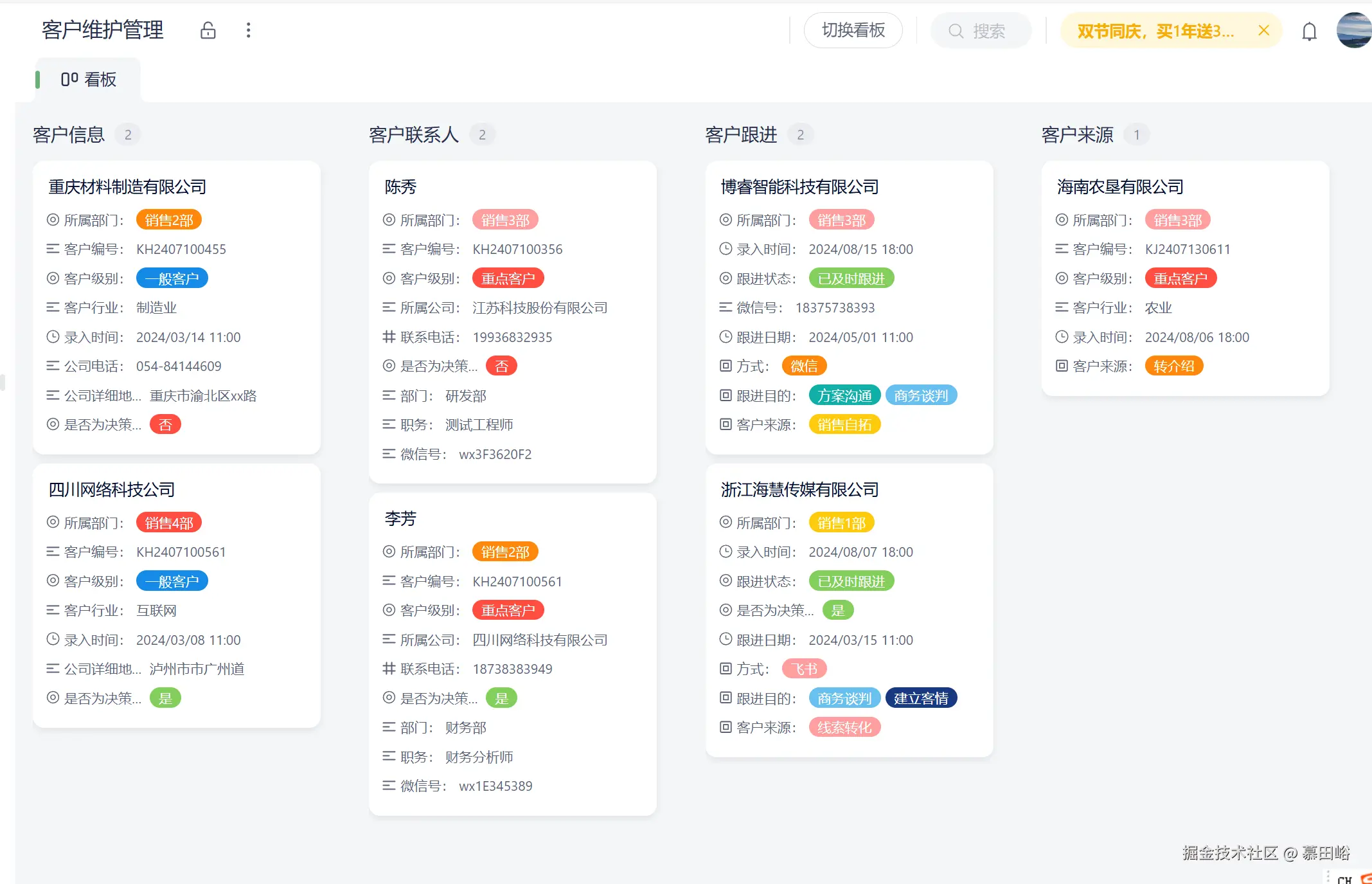 - 客户跟踪更直观