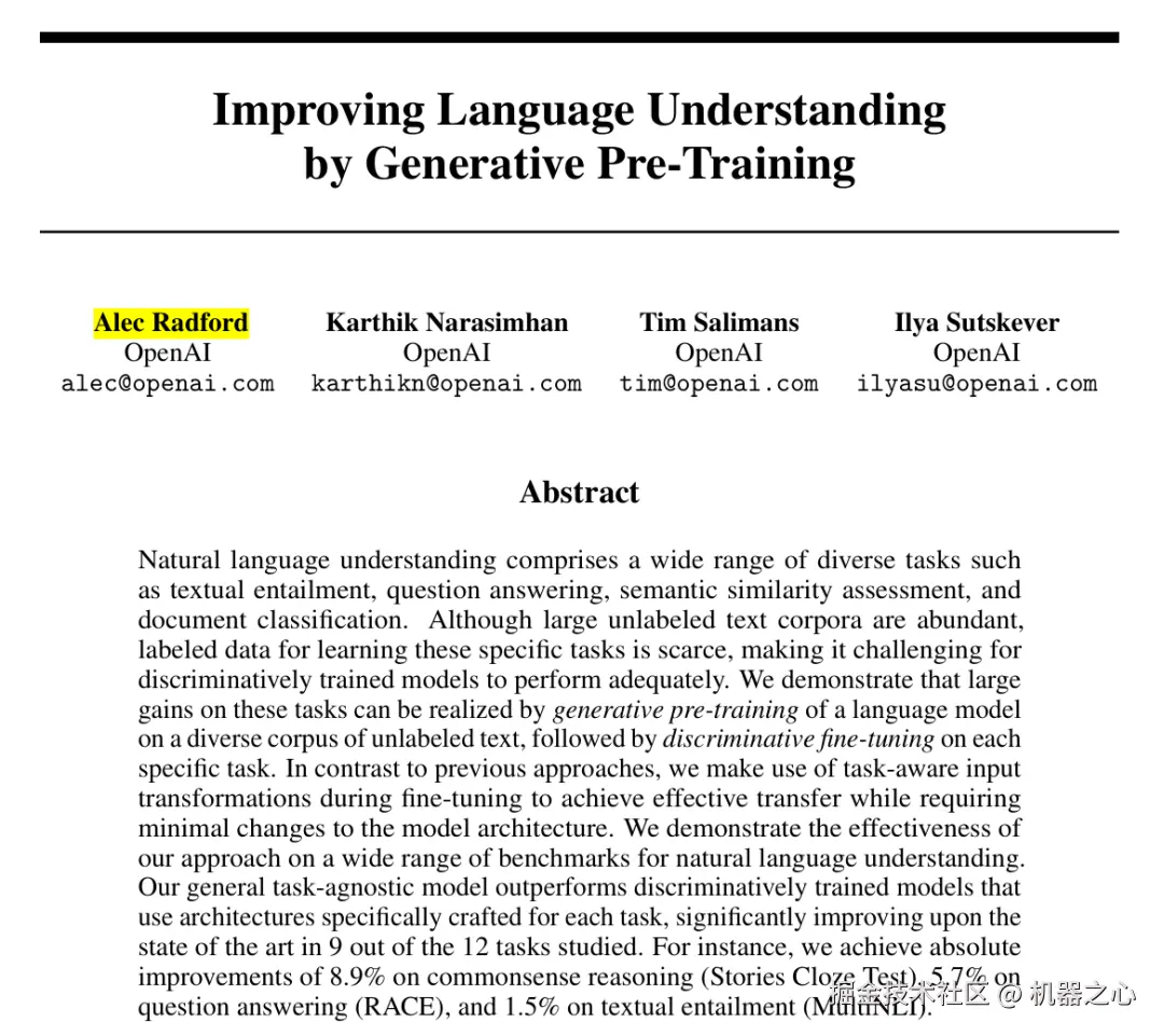 也许你没听说过 Radford 这个人,但他参与的研究却是重量级的,在他 2016 年加入 OpenAI 后,带来了一系列革命性突破,比如大家熟知的初代 GPT,还主导了 GPT-2 的研发等等。