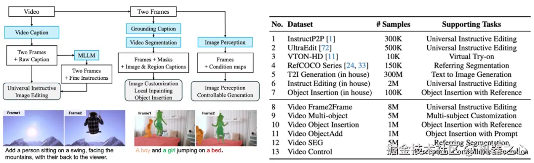 通过这种基于原始视频的多层次数据构造策略,我们的模型能够学习真实世界中的动态变化规律,同时支持多种复杂的图像生成与理解任务,显著提升了数据集的多样性和模型的泛化能力。