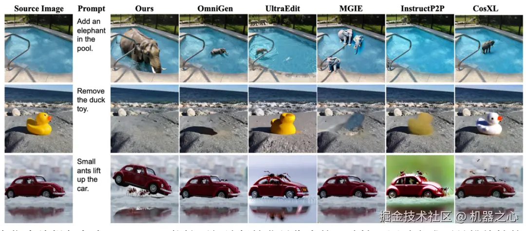 在指令编辑任务中,UniReal 能够更好地保持背景像素的一致性,同时完成更具挑战性的编辑任务。例如,它可以根据用户指令生成 “蚂蚁抬起轿车” 的画面,并在轿车被抬起后动态调整冰面上的反射,使其与场景的物理变化相一致。这种能力充分展现了 UniReal 在场景理解和细节生成上的强大性能。
