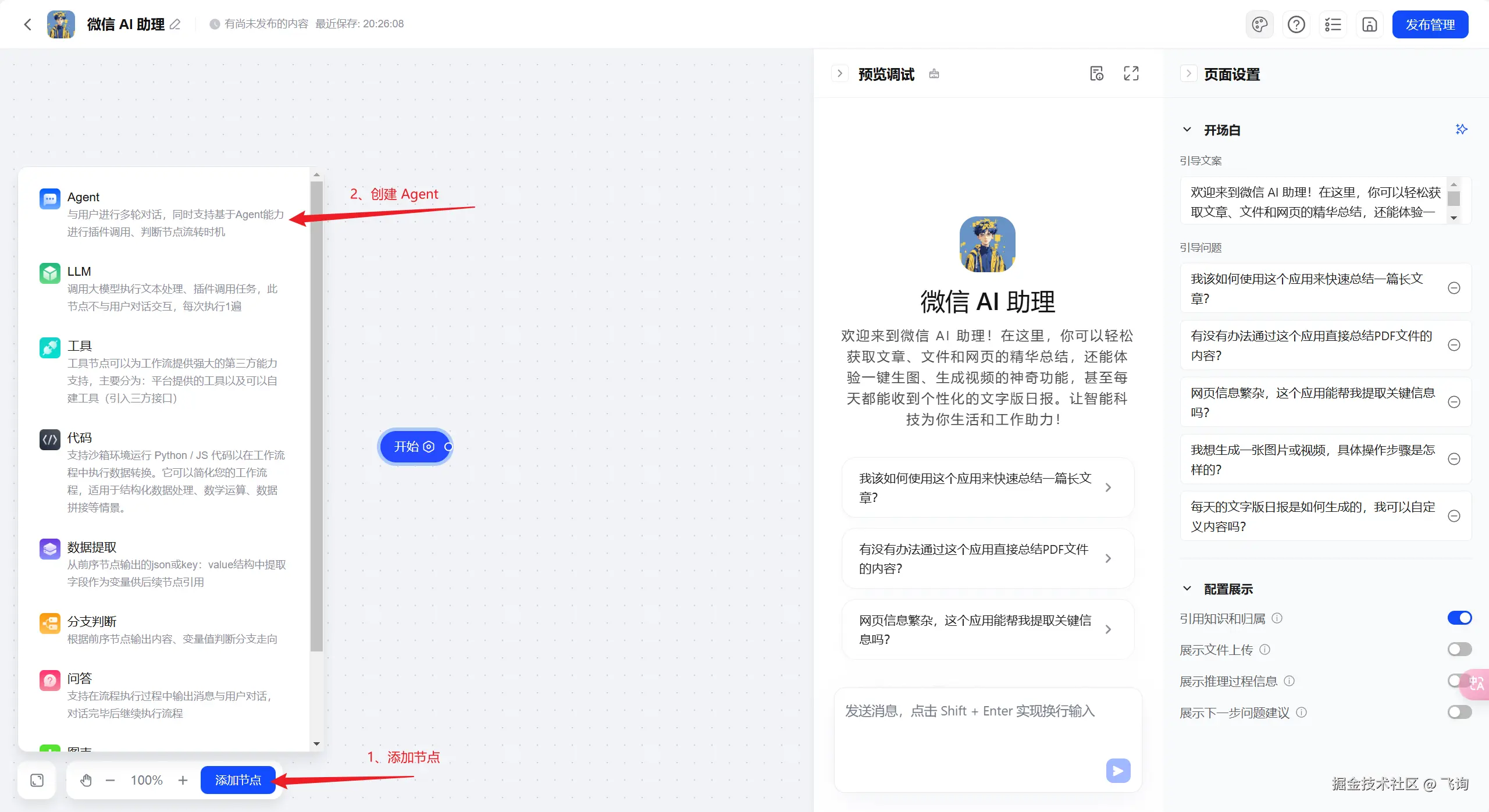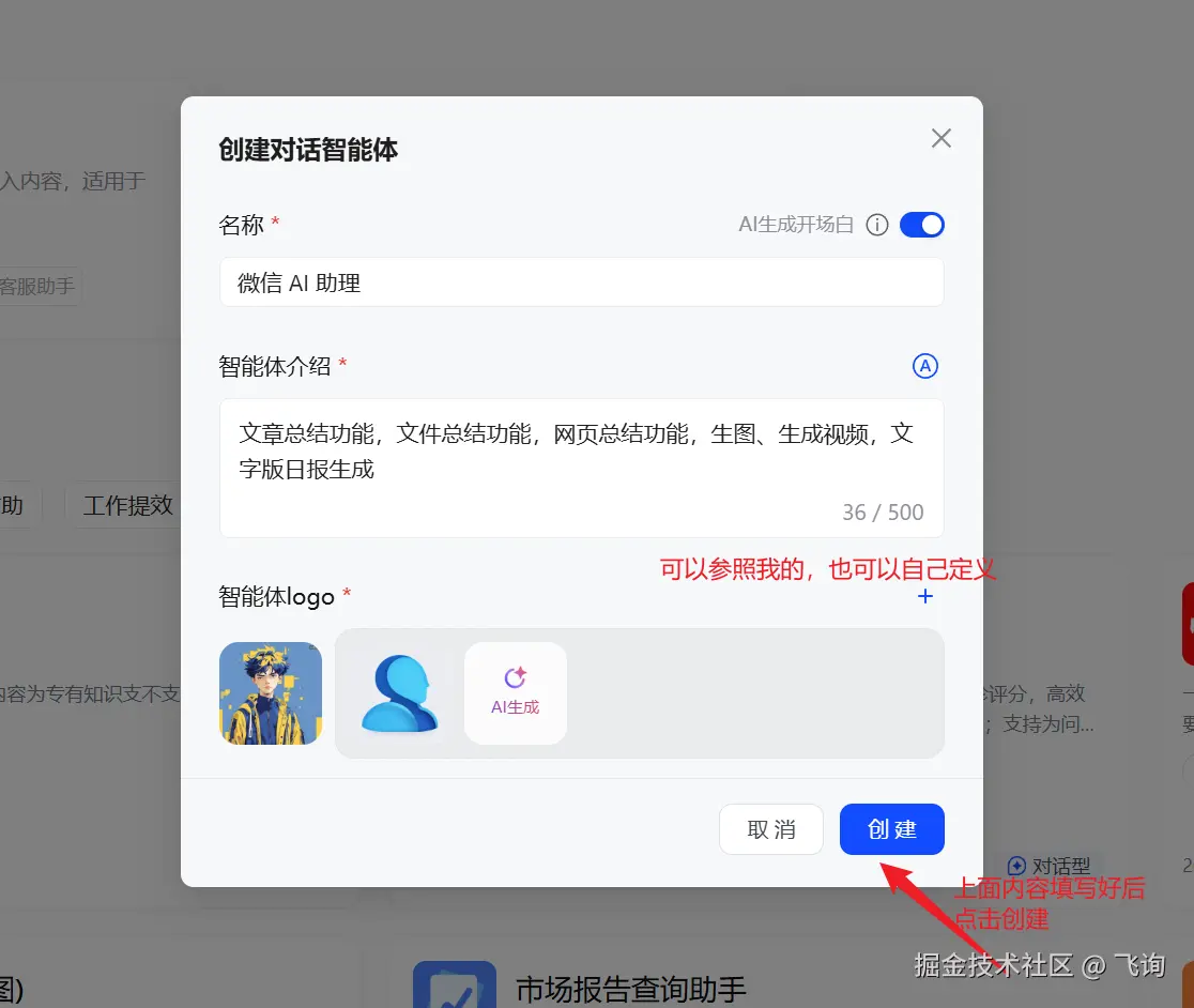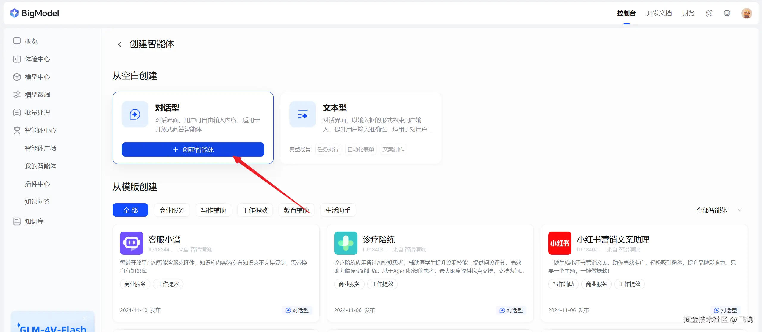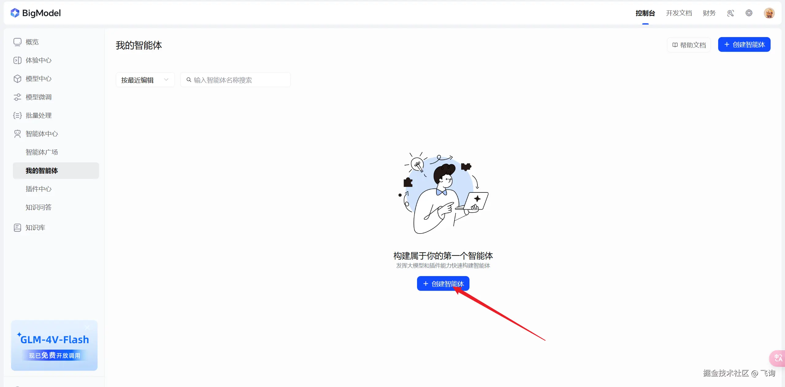 2)进入智能体中心 -》我的智能体,然后点击创建智能体