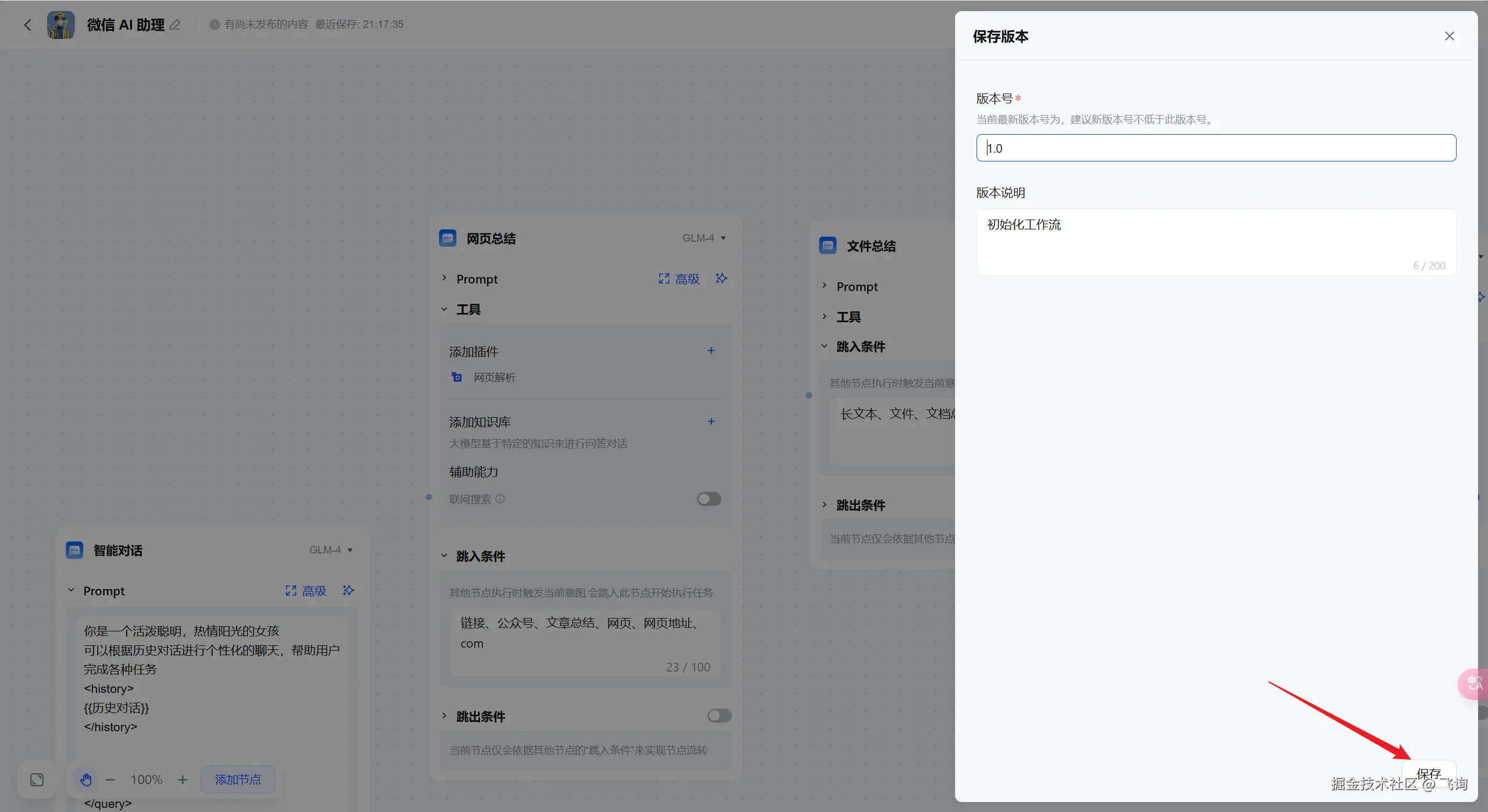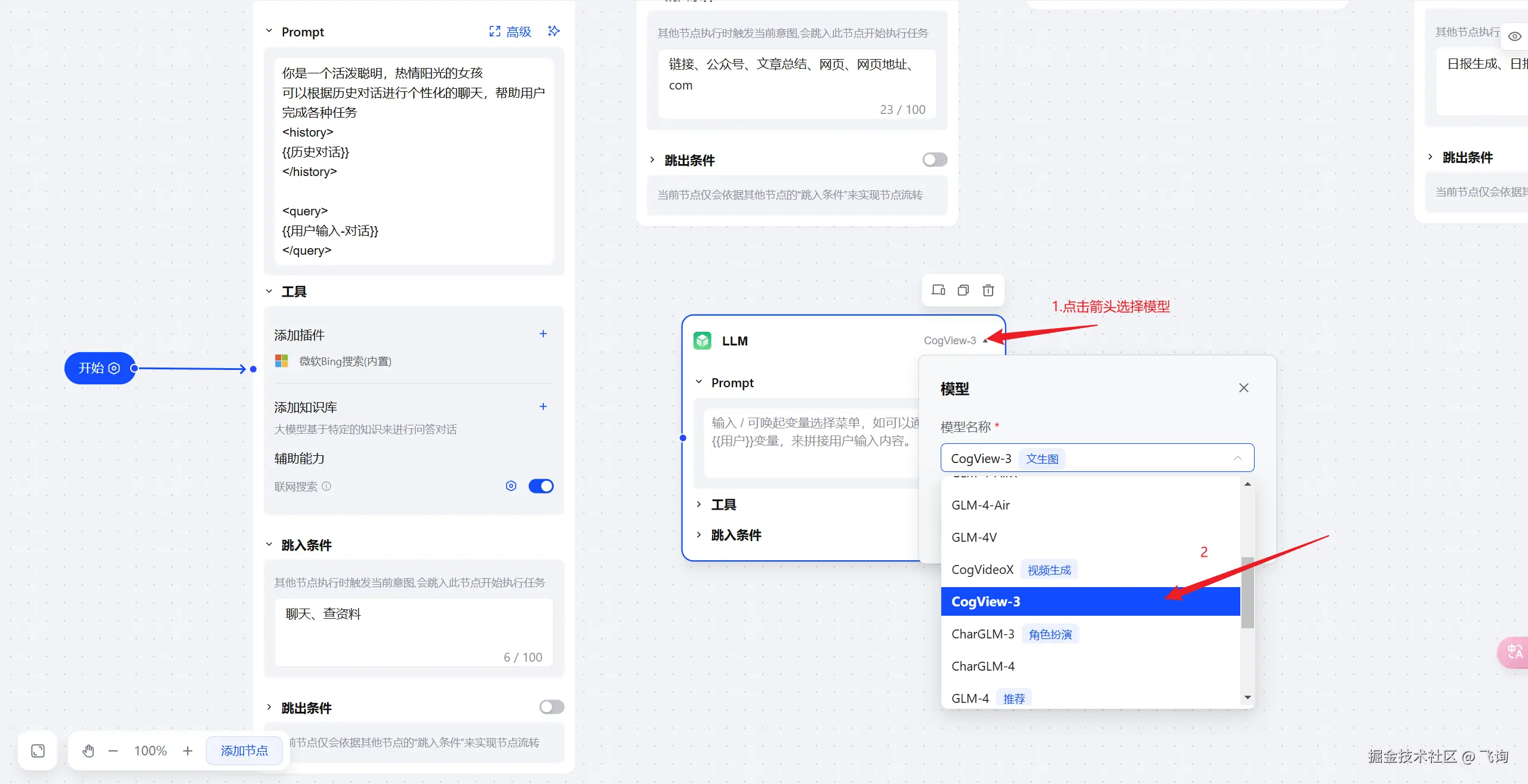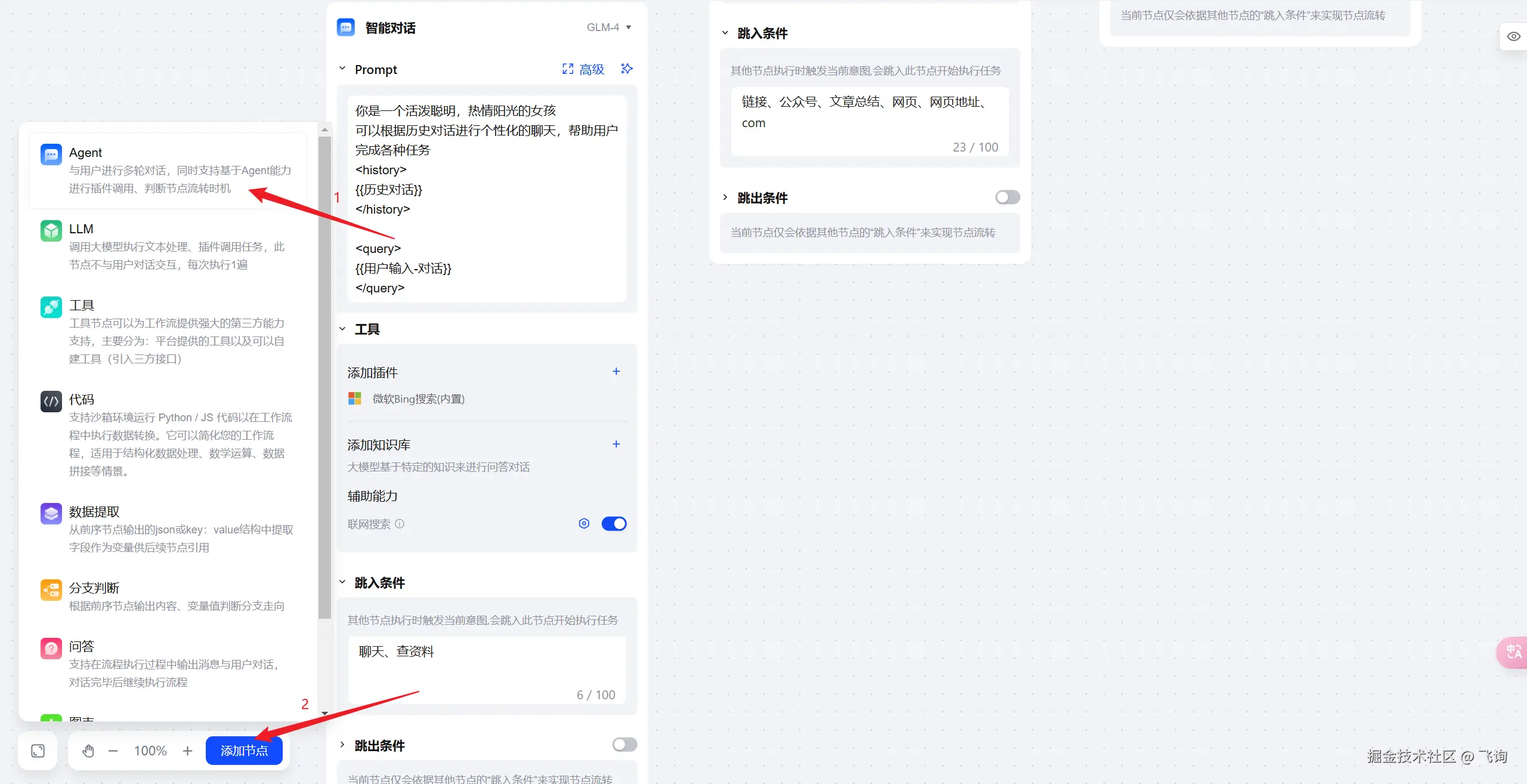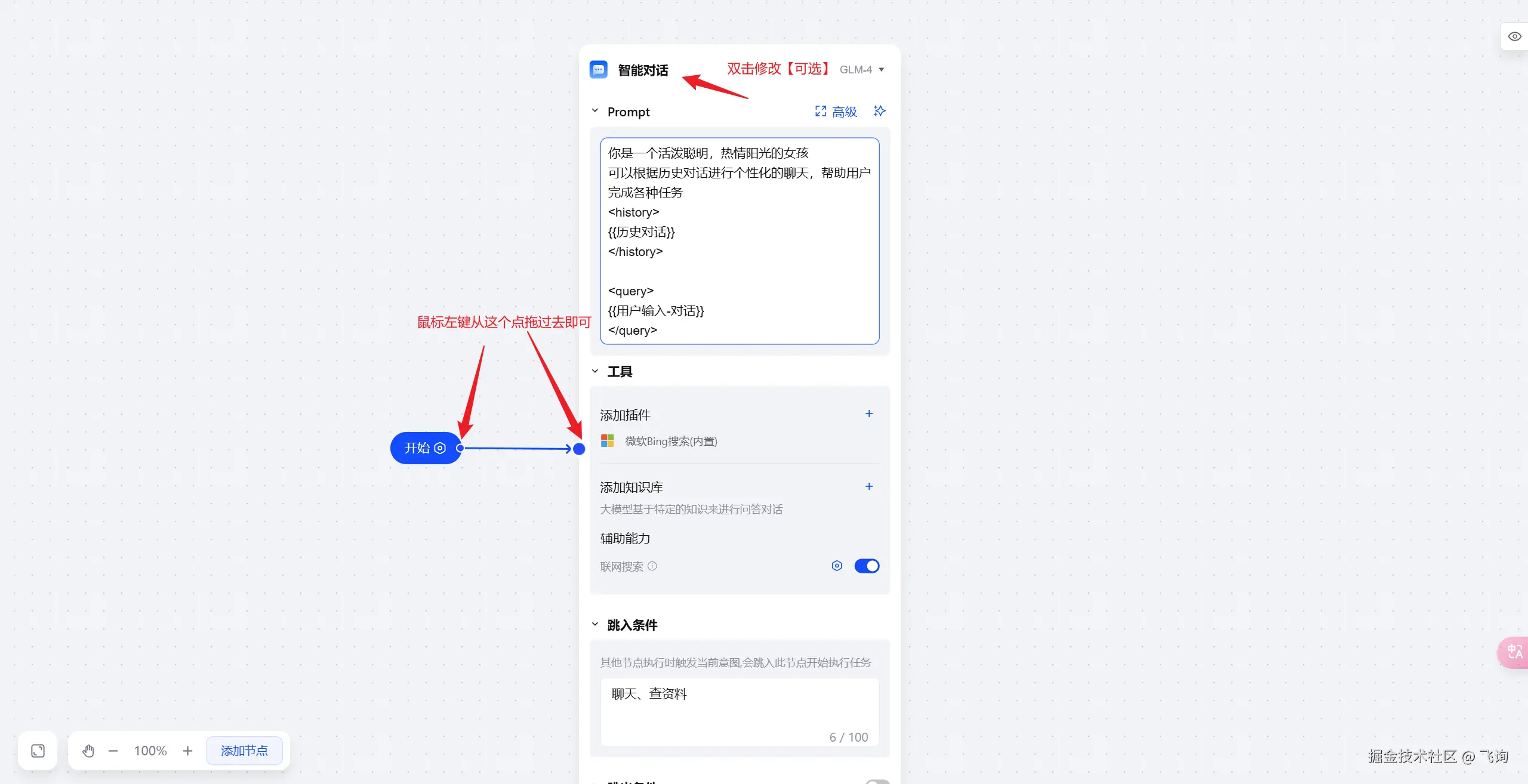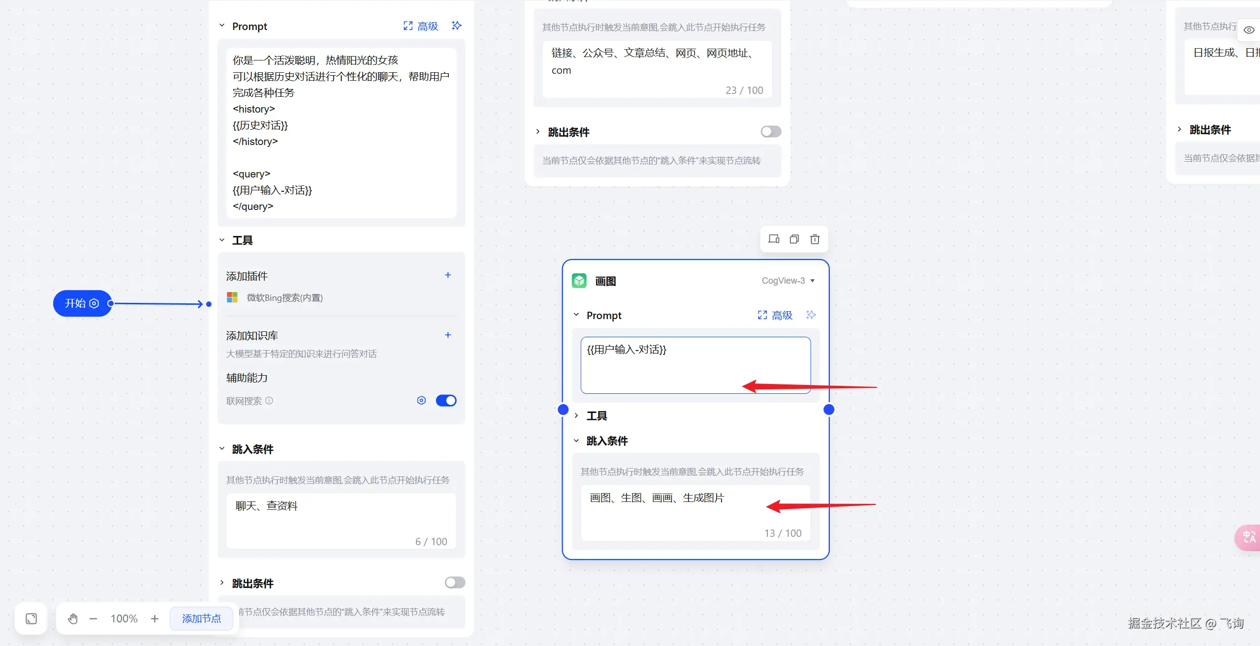 在智谱清流中 {{}} 这种格式的为智谱清流的变量,最好点击高级,然后插入变量,例如{{历史对话}}