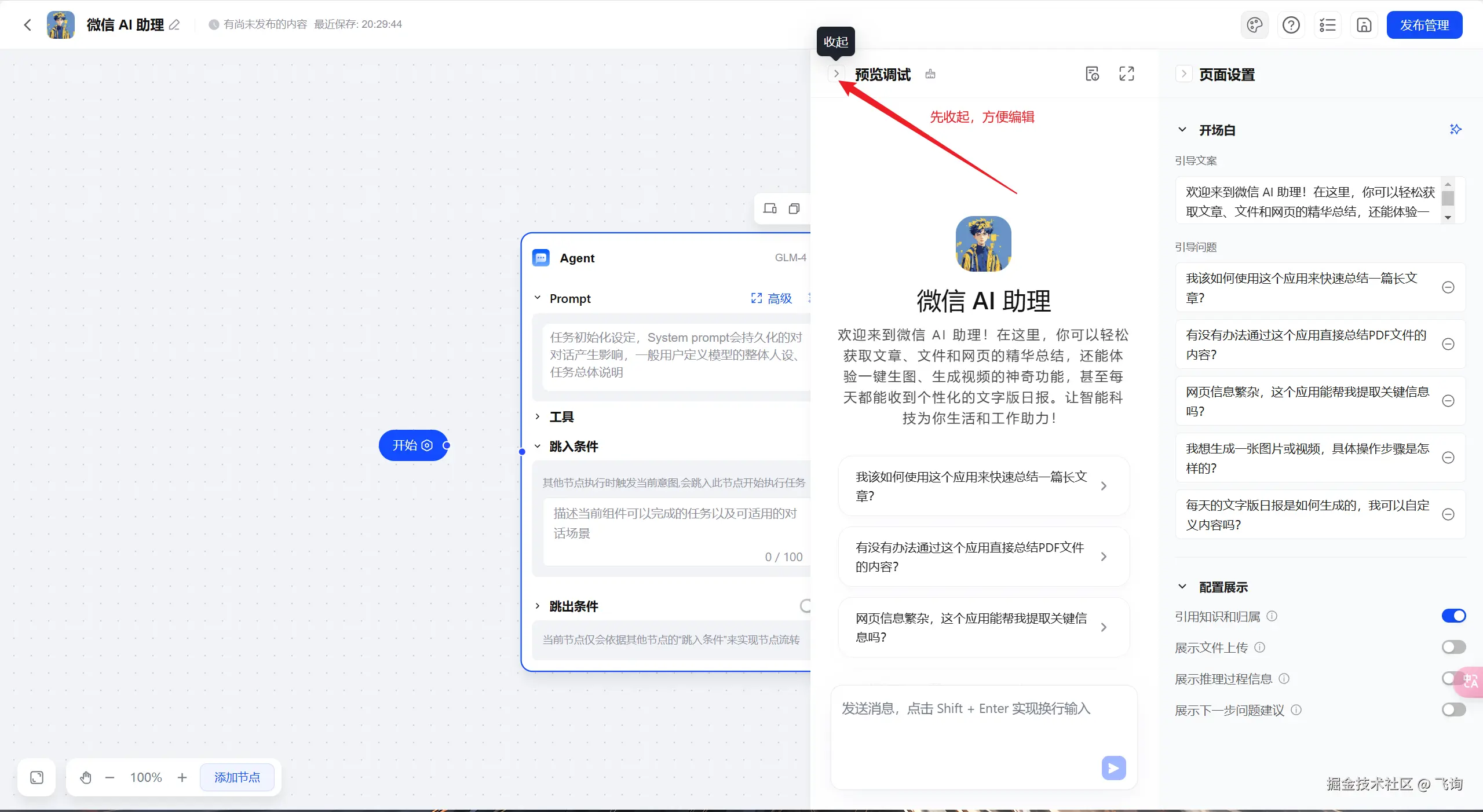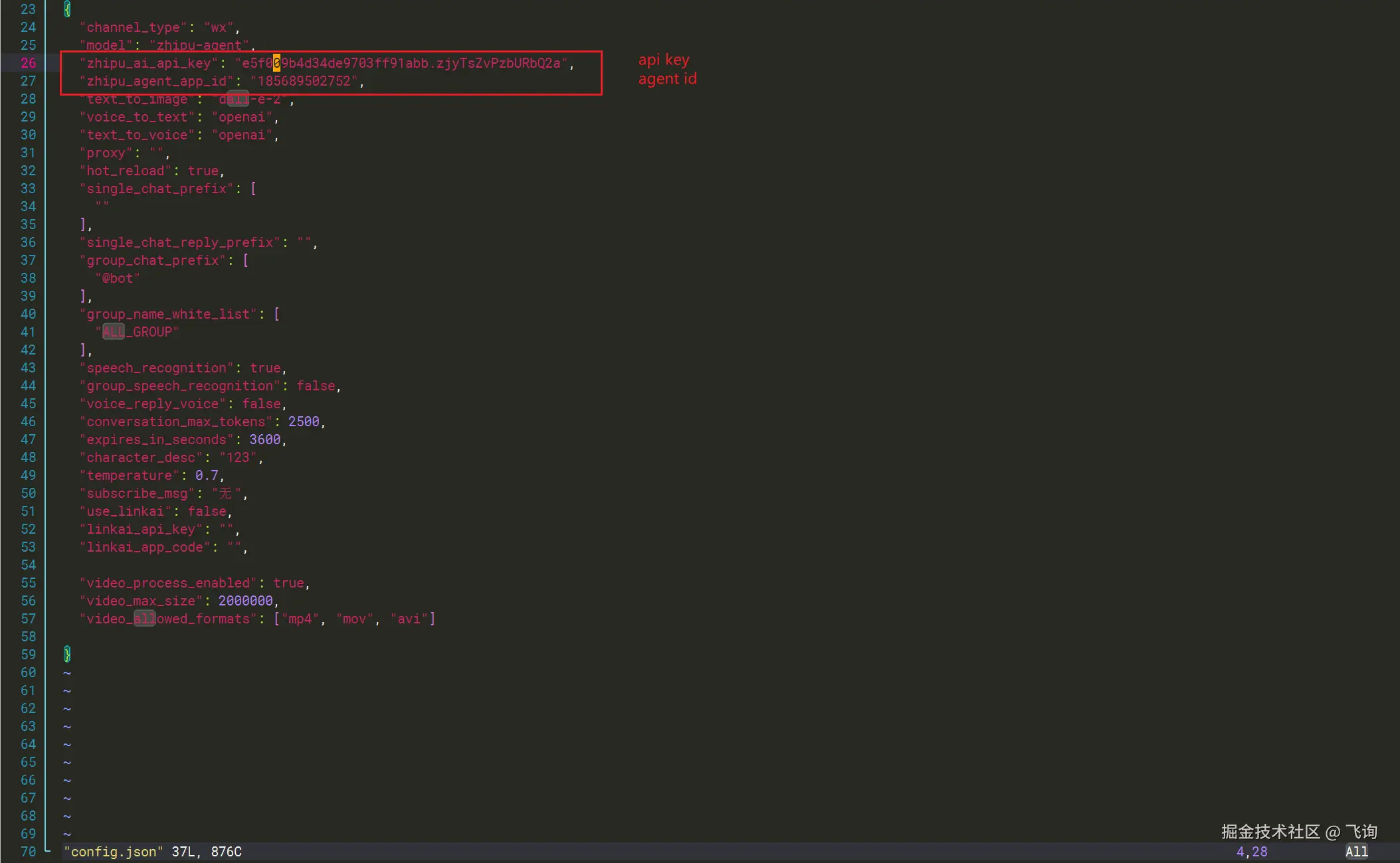 8)打开config.json文件,填入你的智谱 API key 和 agent id