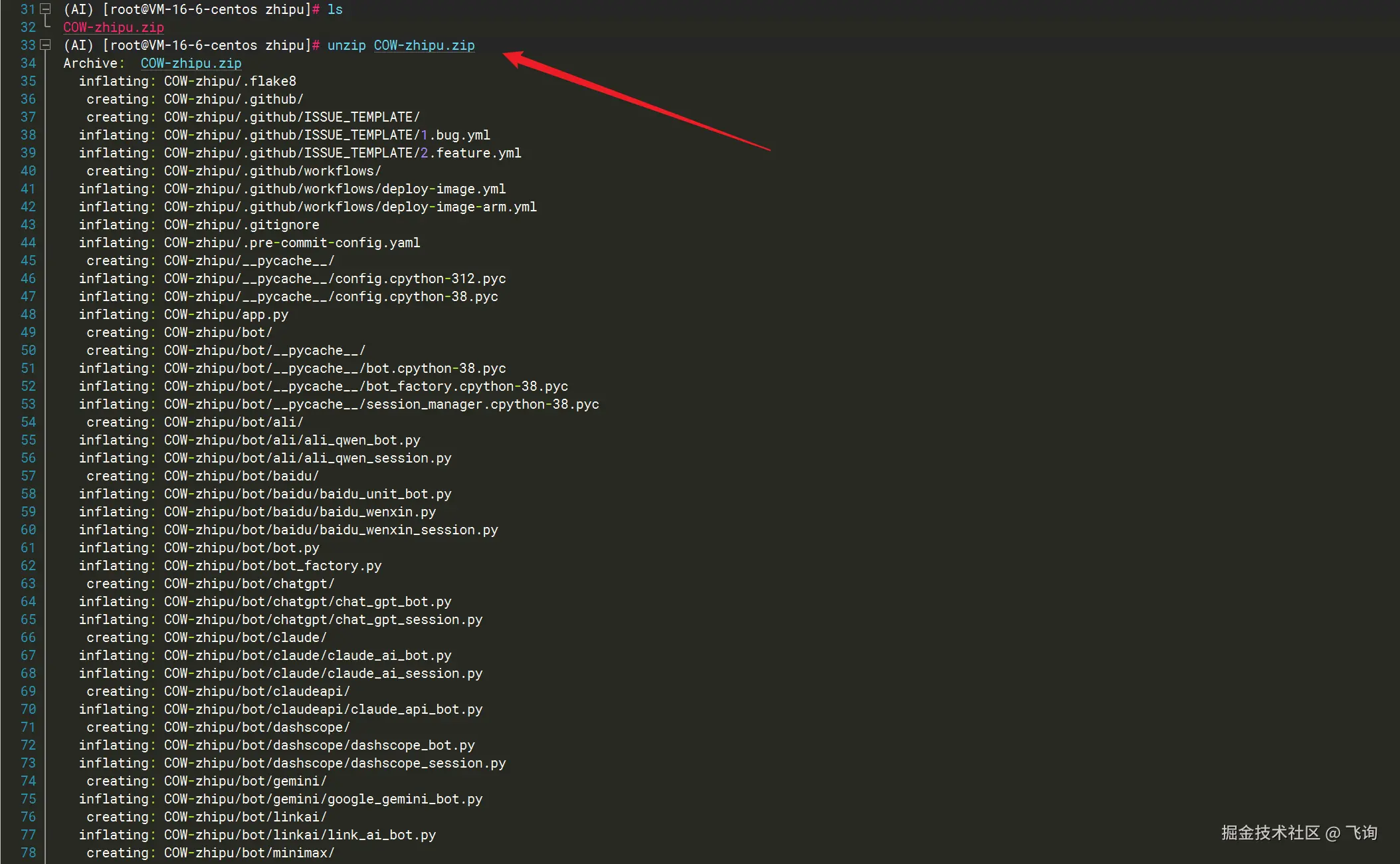 # 比如:我把压缩包解压在 /app/zhipu 目录下