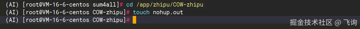 10)切换到 COW-zhipu 目录,然后创建日志文件