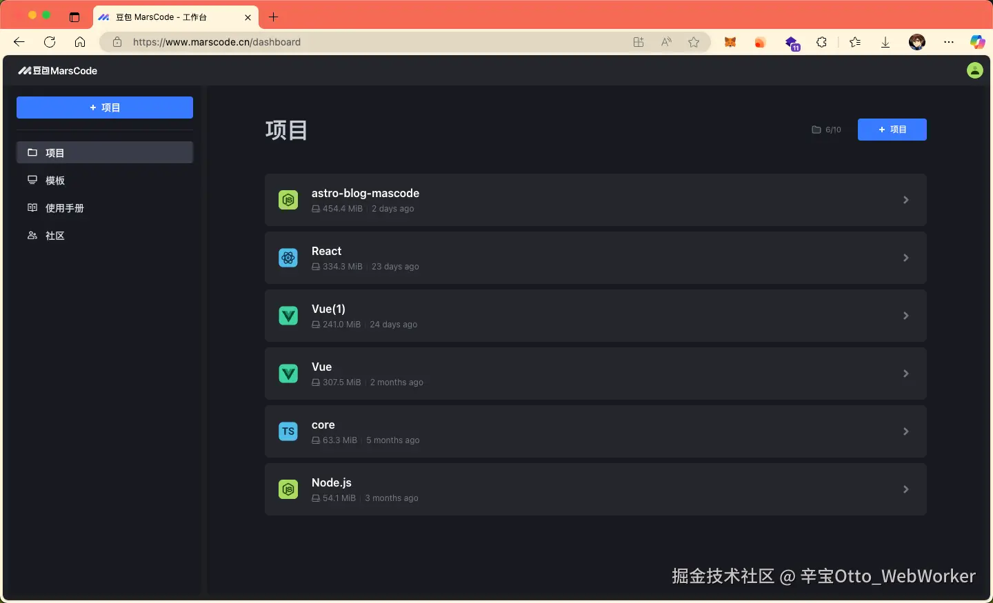 - MarsCode 的 在线 ide 可以随时写代码,随时开启一个新的工程