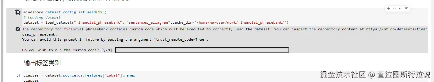 下载数据集,在终端目录/home/ma-user/work目录下执行代码git clone https://huggingface.co/datasets/takala/financial_phrasebank获取数据集。