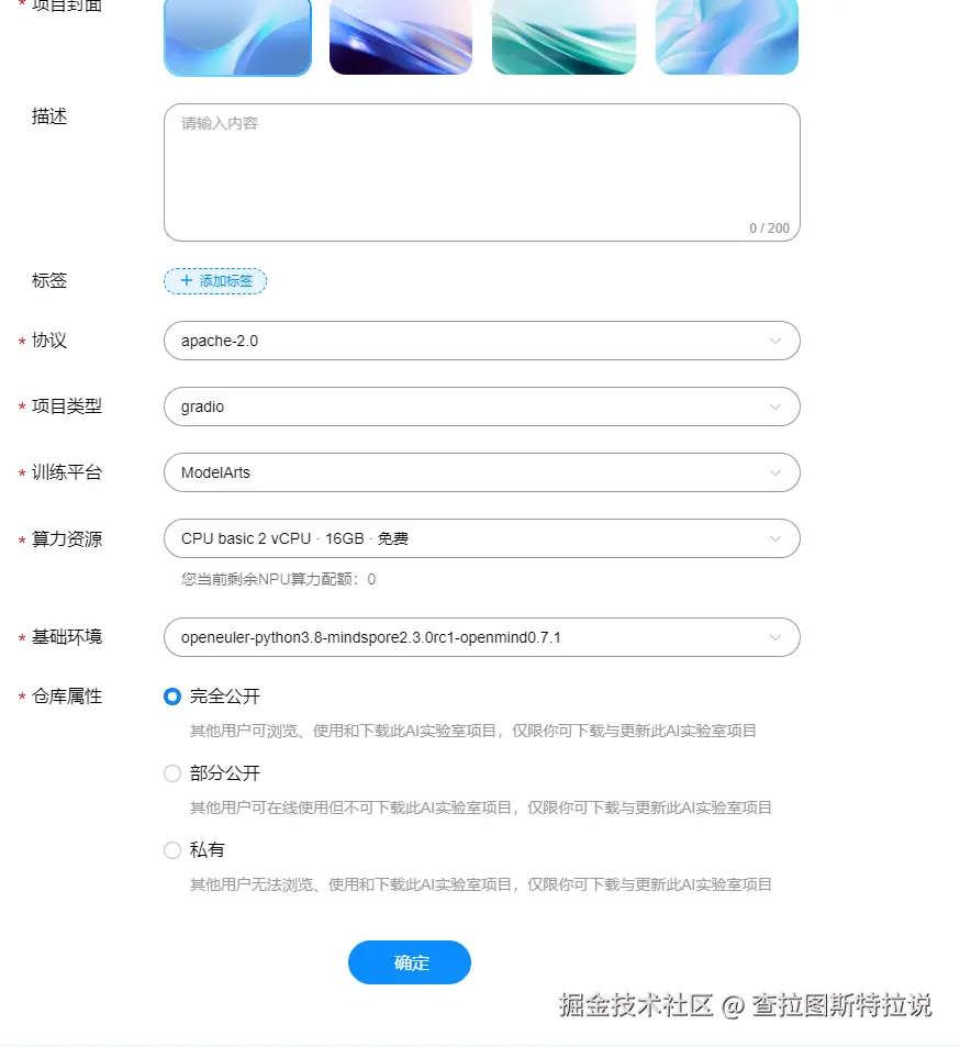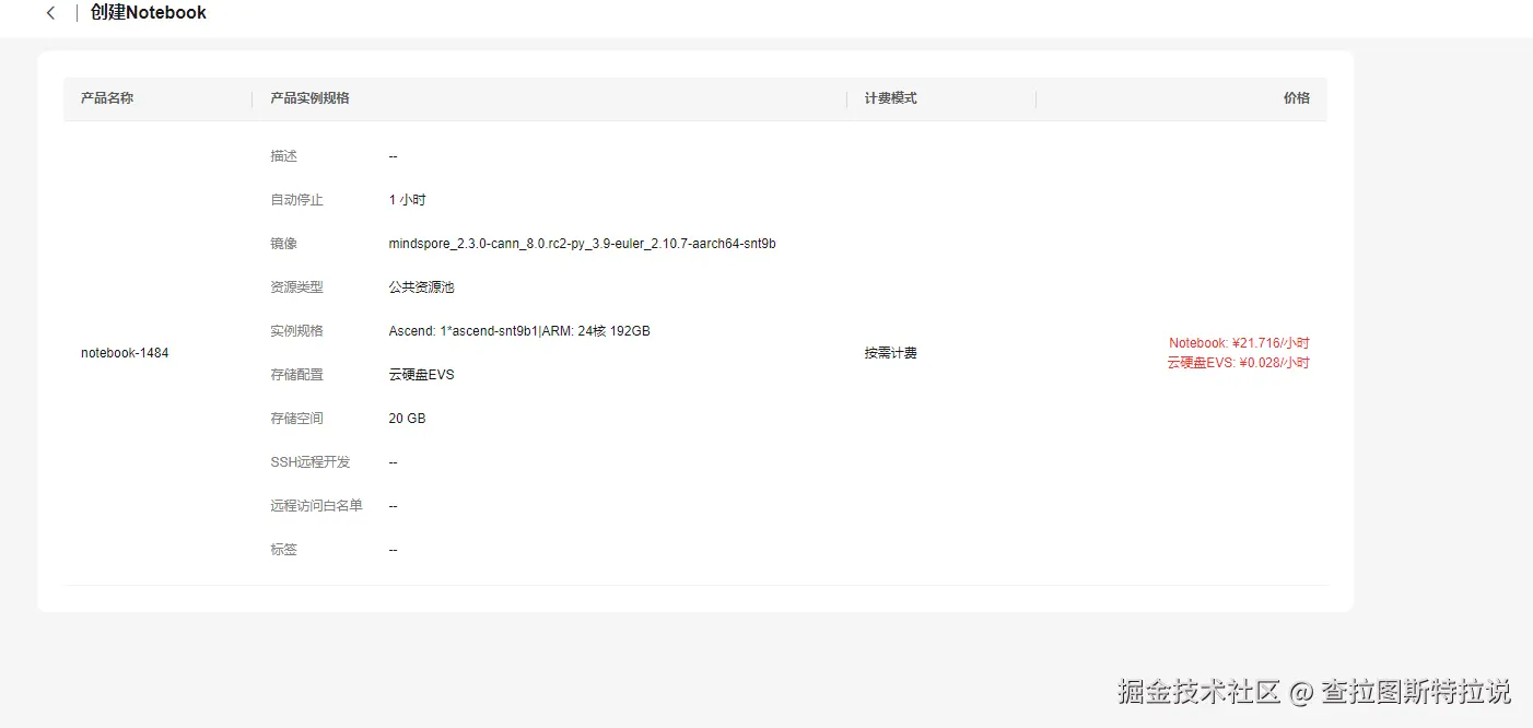 回到列表页面创建notebook参数如下:
