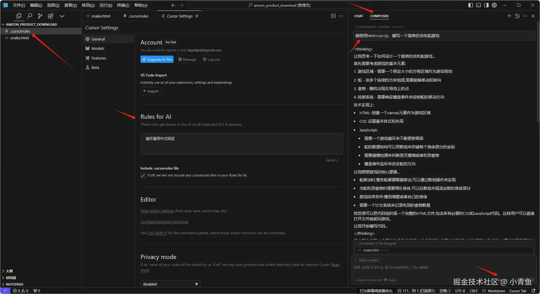 所以我们使用Cursor或者其他AI工具编程时,也是要需要使用prompt的一些技巧,这样当你遇到,普通人很容易理解的表述,但是到了Cursor这里,你重复N遍,也无法达到效果时,不妨使用一些prompt的技巧,就能很轻松解决。(这里等高级部分我们在分享,只有用cursor开发过很多程序,修改过很多bug时-才会有体会。这个我认为大概是高级AI编程人员和初级AI编程人员的区别了吧)