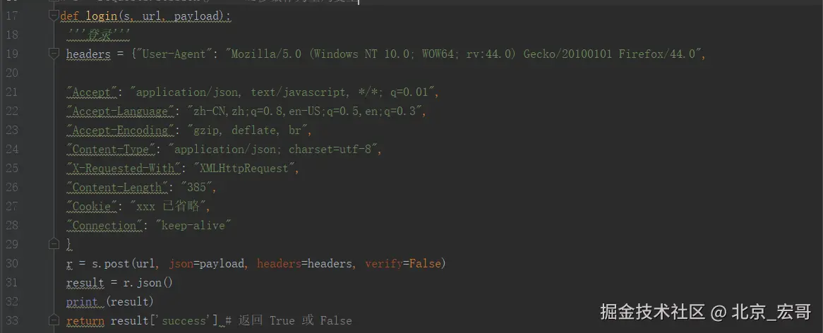 2、登录函数传三个参数,s 是需要调用前面的 session 类,所以必传,可以传个登录的 url,然后 payload 是账号和密码