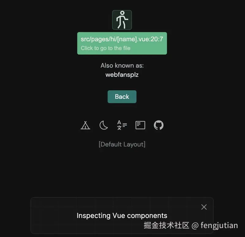 您还可以使用“Inspector”功能来检查DOM树并查看哪个组件正渲染它。单击以转到特定行。使更改变得更加容易,而不需要彻底了解项目结构。(基于vite-plugin-vue-inspector实现的)。