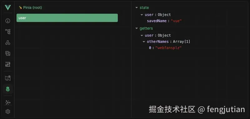 Pinia选项卡与Pinia集成,允许您查看已注册的模块及其详细信息。