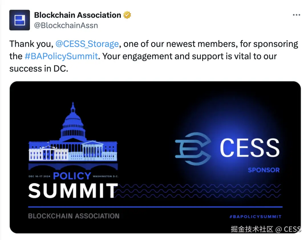 在区块链政策与技术创新的关键节点,CESS 通过参与 2024 区块链政策峰会,积极推动去中心化基础设施的政策完善与行业合规。作为 DePIN 工作小组的重要成员,CESS 将继续携手行业伙伴,为全球用户提供安全、隐私保护和合规的数据存储与管理解决方案,助力区块链技术迈向更广阔的未来。
