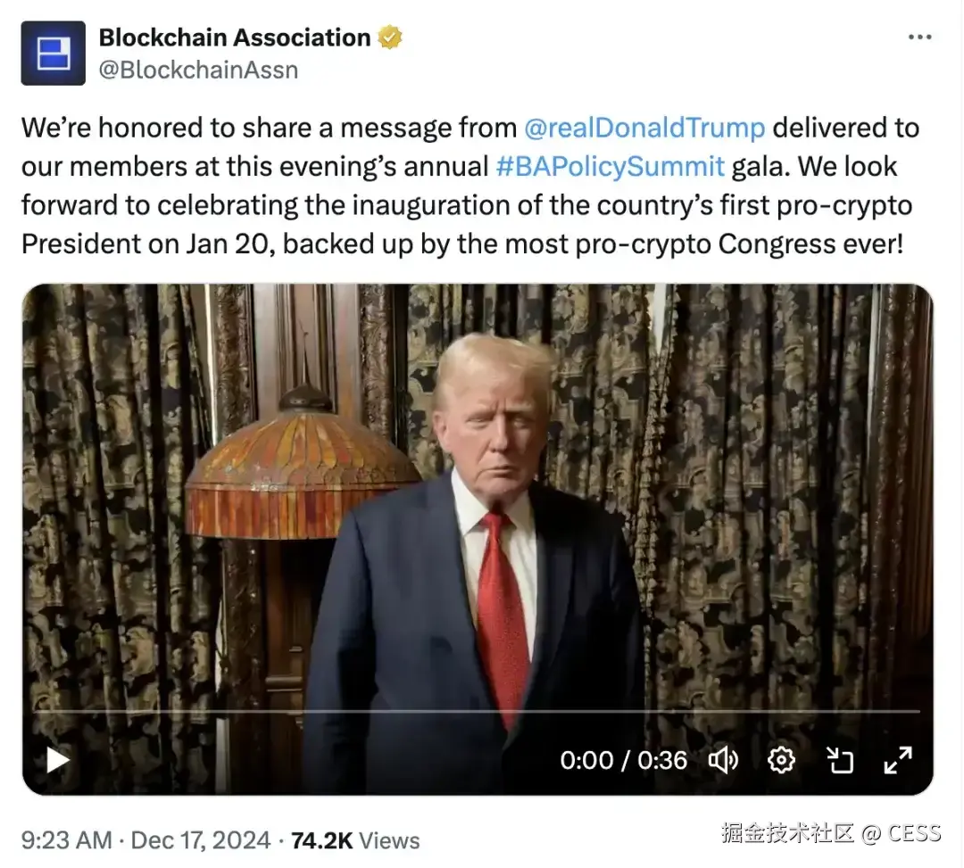 美国总统特朗普致电峰会,向参会者表达祝贺,他强调了区块链和加密行业在国家经济与安全中的关键作用,并表示新政府将支持加密政策的积极推进,倾听行业声音,推动创新与监管平衡发展。正如特朗普在视频电话中所说的:”We behind you, we fight for you",区块链技术的发展,行业的进步离不开底层基础设施的建设,离不开官方层面上的合规发展。如 CESS 一般在行业建设的基础设施项目,在峰会上向立法者们展示了技术的创新魅力和真实用例价值。