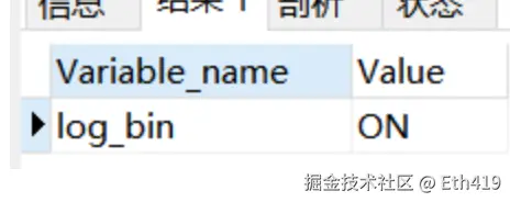 :show variables like 'log_bin' 查看值是不是为on