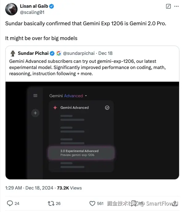 Gemini Exp 1206 就是 Gemini 2.0 Pro,它在数学,编程,逻辑推理上提升巨大。该版本已向Gemini Advanced订阅用户开放测试。