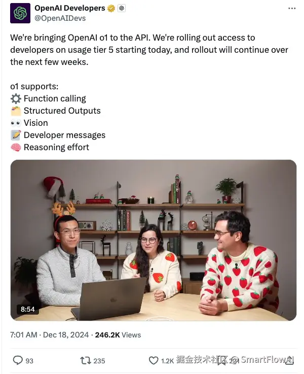 OpenAI正式宣布将其最新的语言模型o1的API接口向开发者开放,首批面向tier 5级别用户,未来几周将逐步扩大开放范围。该模型支持函数调用、结构化输出、视觉处理、开发者消息和推理能力等五大核心功能。