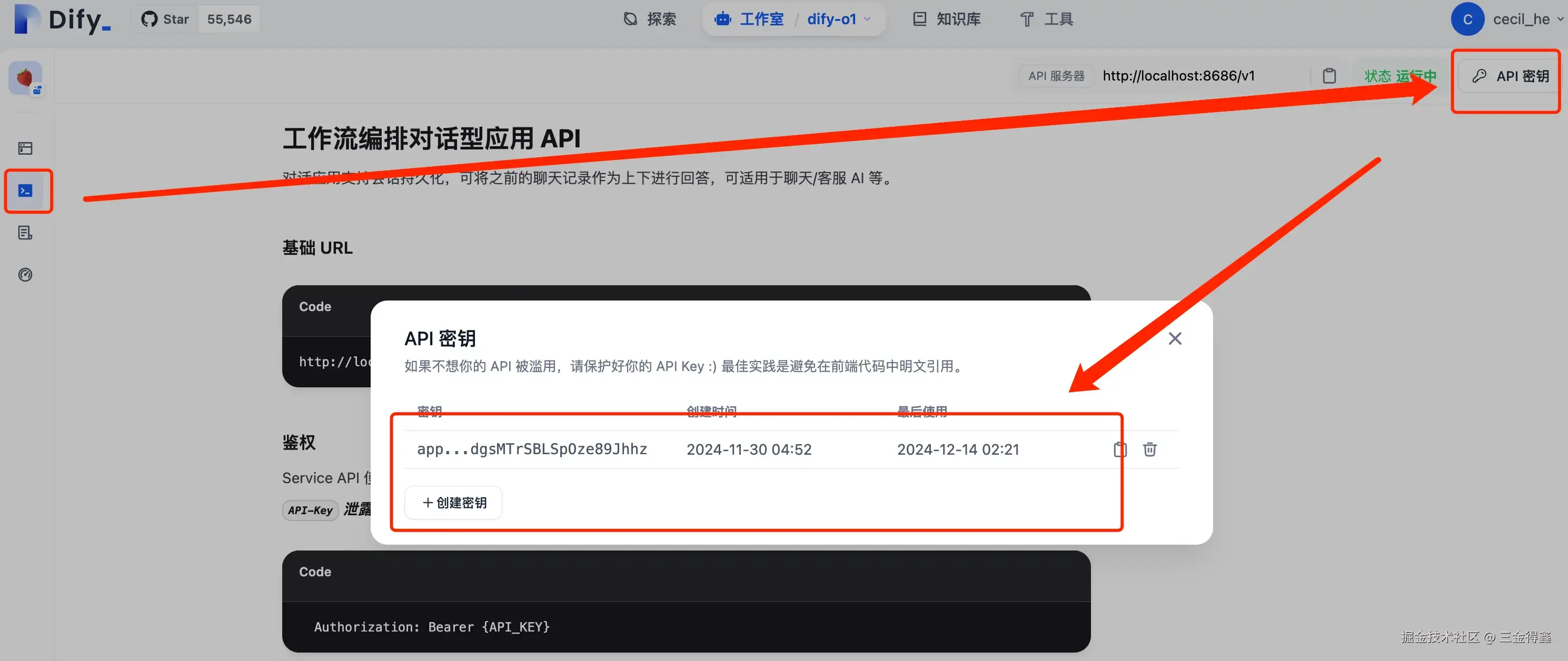 之前有介绍过一个山寨版的 dify-o1,这是一个 Chatflow,我们获取一下它的 API Key 之后接入到 new-api 中来测试一下。