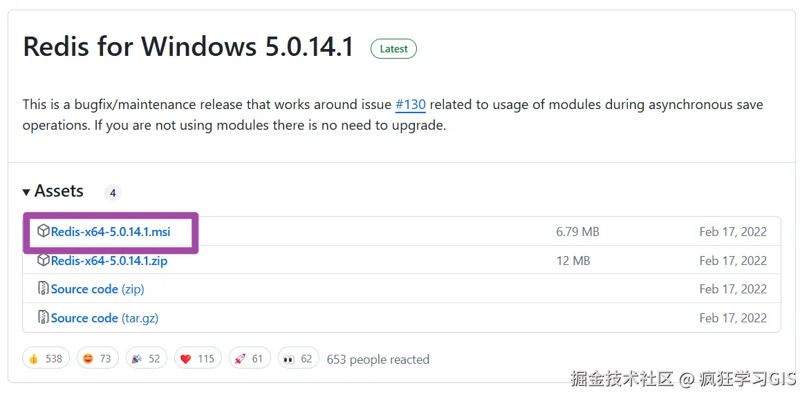 首先,我们进入Redis的官方下载网站,下载安装包(也可以用下载压缩包的方式来安装Redis,但本文就介绍安装包的方法,因为这个方法方便一些)。这里需要注意,Redis官网是不提供Windows版本的Redis的,一开始是由微软的一个团队负责维护其Windows版本,具体可以查看这里;但是,目前该团队也停止了对这一Windows版本Redis的维护工作,其更新停留在了2016年。现在,则是另一个志愿者团队在维护Windows版本的Redis,我们就在其官方网站中下载Redis即可。