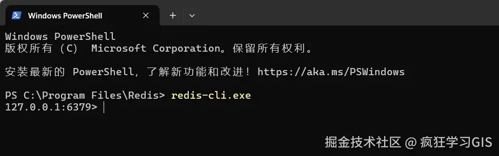 运行上述代码,如下图所示,即进入了Redis命令行,或者说是客户端。