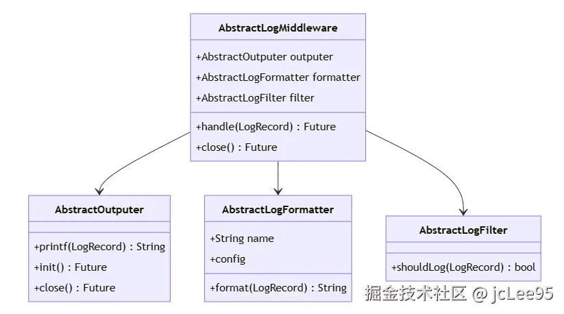 Logger Easier 采用了模块化和中间件的设计理念,将日志处理流程解耦为多个独立的组件。整体架构遵循单一职责原则和开闭原则,使得系统具有高度的可扩展性和灵活性。