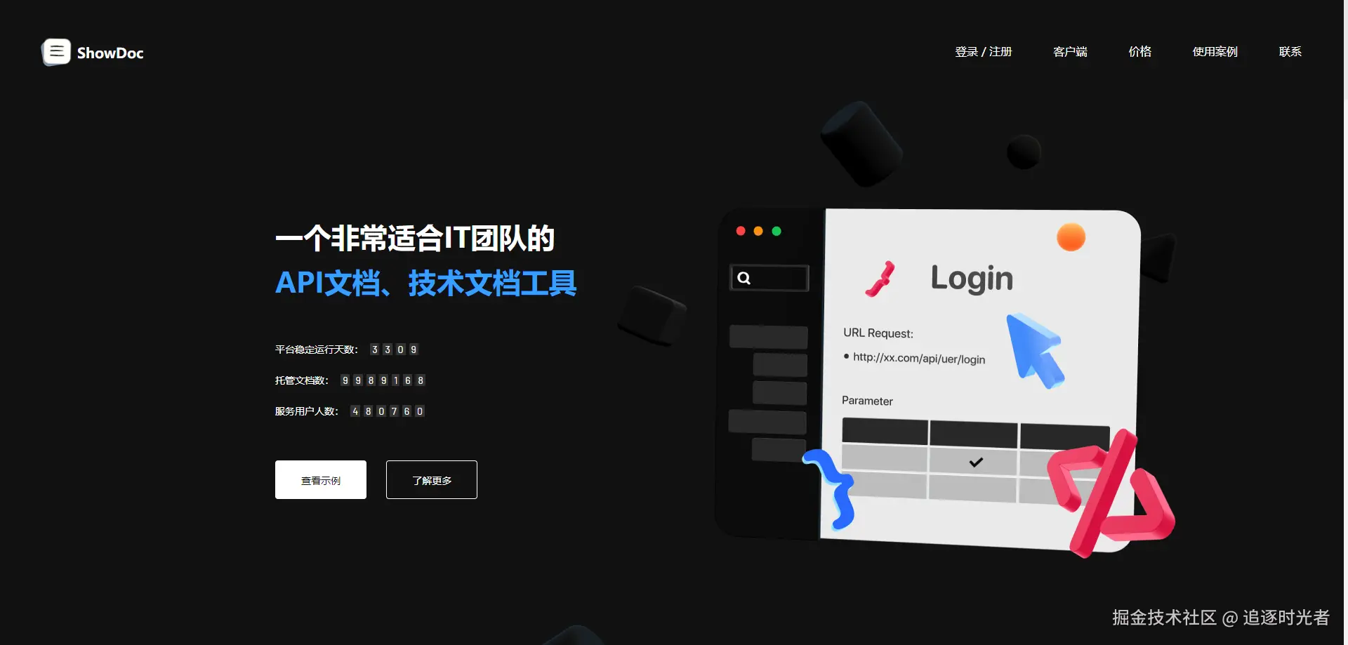 ShowDoc 是一款开源的在线文档工具,它以轻量化设计、操作简便以及强大的功能深受开发者和团队的喜爱。是一个非常适合IT团队的在线API文档、技术文档工具。你可以使用 ShowDoc 来编写在线API文档、技术文档、数据字典、在线手册等。