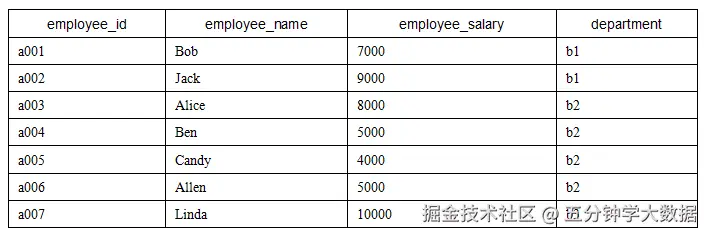 题目1**:****找出每个部门工资第二高的员工**现有一张公司员工信息表employee,表中包含如下4个字段。