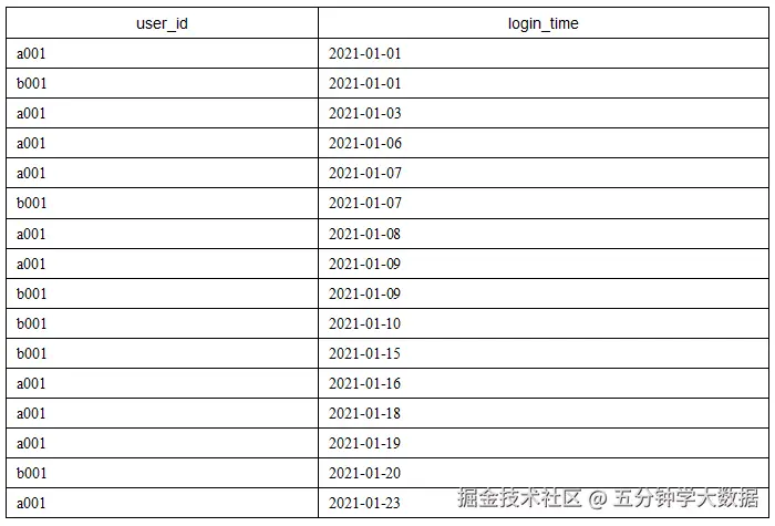 题目2:****网站登录时间间隔统计现有一张网站登录情况表login_info,该表记录了所有用户的网站登录信息,包含如下两个字段。