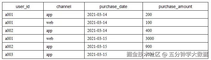题目3:****用户购买渠道分析现有一张用户购买信息表purchase_channel,该表记录了用户在某购物平台的购物信息,该购物平台具有网页端(web)和手机端(app)两种访问方式,表中包含如下4个字段。