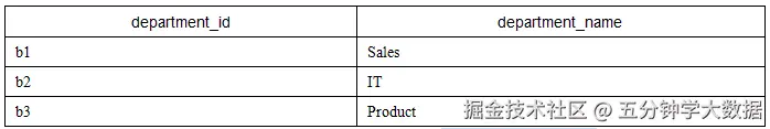 结果样例如下图所示。**可供参考的解题思路:**使用窗口函数根据部门ID分组,在组内按照员工薪资降序排列并记为ranking,然后将该处理后的表和部门信息表进行内连接,从而把部门名称关联进来,最后在连接后的表上使用ranking=2作为薪资第二高的条件进行WHERE筛选,选择需要的列,即可得到结果。**涉及知识点:**窗口函数、子查询、多表连接。本题的SQL代码如下,供读者参考: