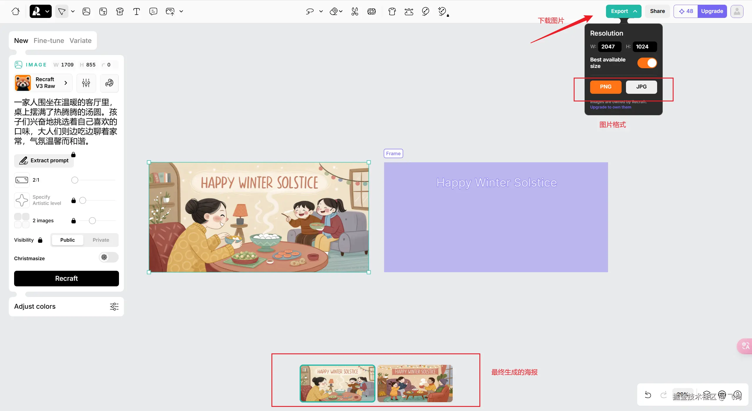 使用 recraft 生成冬至的海报