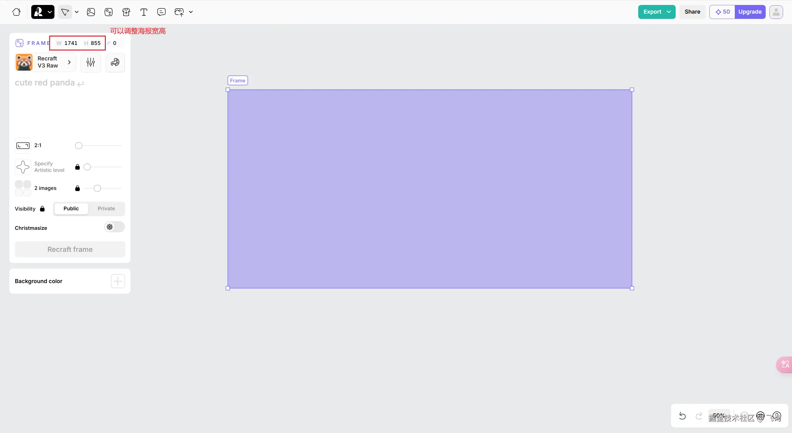 海报生成(Frame):根据框选的大小,通过文字生成图片,可给图片里面加上文字(目前不支持中文)
